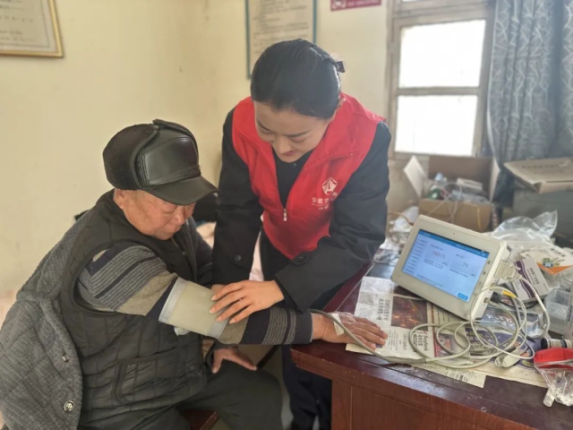 徐明公司漁溝站志愿者走進附近社區(qū)衛(wèi)生院幫助老人測量血壓