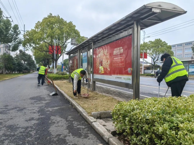 設(shè)計總院高速檢測蕪宣試驗室青年志愿者打掃公交站臺