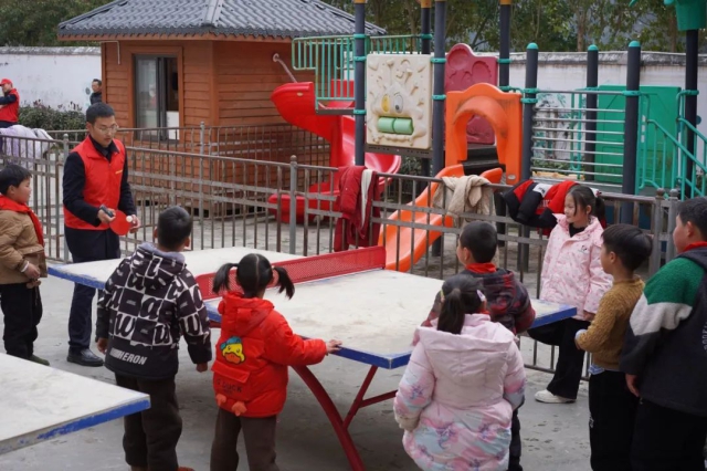 高界處青年志愿者在集團公司定點幫扶村栗樹村小學與孩子們同上一堂體育課