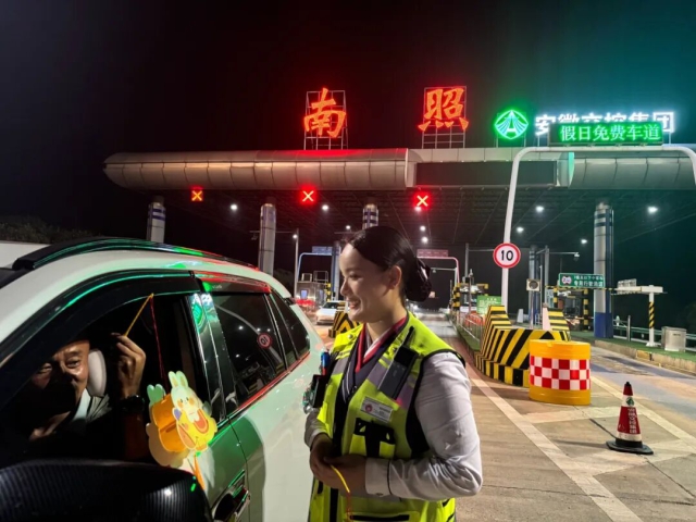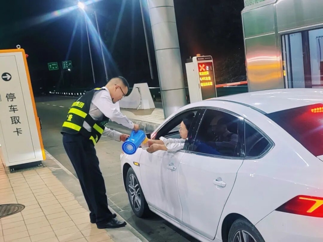 阜陽(yáng)中心南照收費(fèi)分中心員工為過(guò)往司乘送上小燈籠