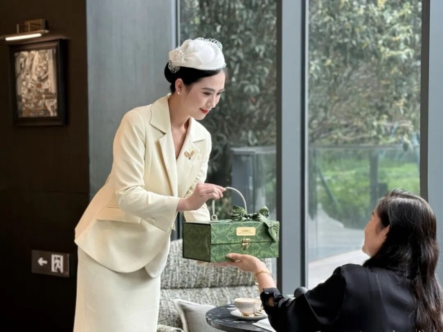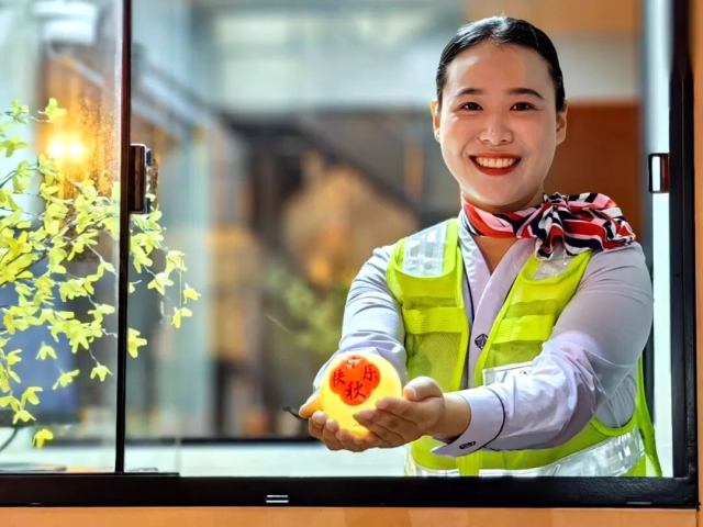 地產(chǎn)集團(tuán)高速·壹品金鑰匙服務(wù)團(tuán)隊(duì)客服人員為到訪客戶(hù)送上中秋禮物