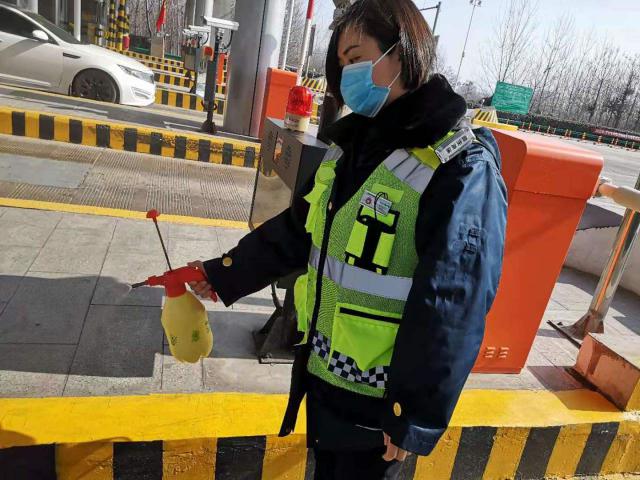 每日把關(guān)進(jìn)出人員登記、站區(qū)消毒、體溫測量、食堂衛(wèi)生安全,身為分中心主任,張書貴真正把守土有責(zé)、以身作則踐行到工作的方方面面。疫情爆發(fā)初期,消毒用品一時(shí)緊俏,為了讓臨近站點(diǎn)都能備足消毒用品,夫妻二人主動(dòng)請纓,聯(lián)系熟人多方籌措,并多次自駕往返古井鎮(zhèn),購買了100斤酒精,第一時(shí)間將酒精送去亳鹿站、亳永站和鐵佛站等兄弟站點(diǎn)。姚永俠也不甘落后,每天完成收費(fèi)現(xiàn)場和站區(qū)消毒后,主動(dòng)協(xié)助疫情檢測工作人員引導(dǎo)車輛,為檢測點(diǎn)做好后勤服務(wù)。